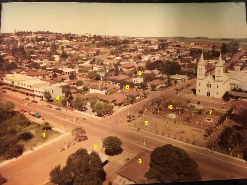 A partir da Igreja Matriz, à esquerda aparece um prédio branco de dois pisos. Ali, funcionou por muitos anos a Foto Modelo, do Adão Pezenti, e onde hoje está a redação do JEAcontece, do qual sou seu diretor-editor, entre outros.